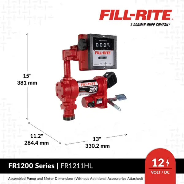 Bomba Fill-rite de transferencia de combustible de 12 V CC 15 GPM con boquilla y medidor
